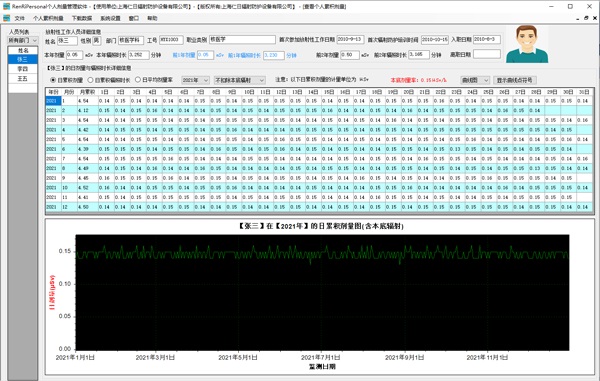 11、管理軟件:可選配強(qiáng)大的RenRiPersonal個(gè)人劑量管理軟件,軟件可計(jì)算日累積、月累積、年累積、輻照時(shí)長、日平均劑量率、扣除或不扣除本底輻射,瞬間顯示86400條/天的劑量率,以圖譜或文字的方式展現(xiàn)數(shù)據(jù);可為特定用戶提供定制開發(fā)或二次開發(fā)。